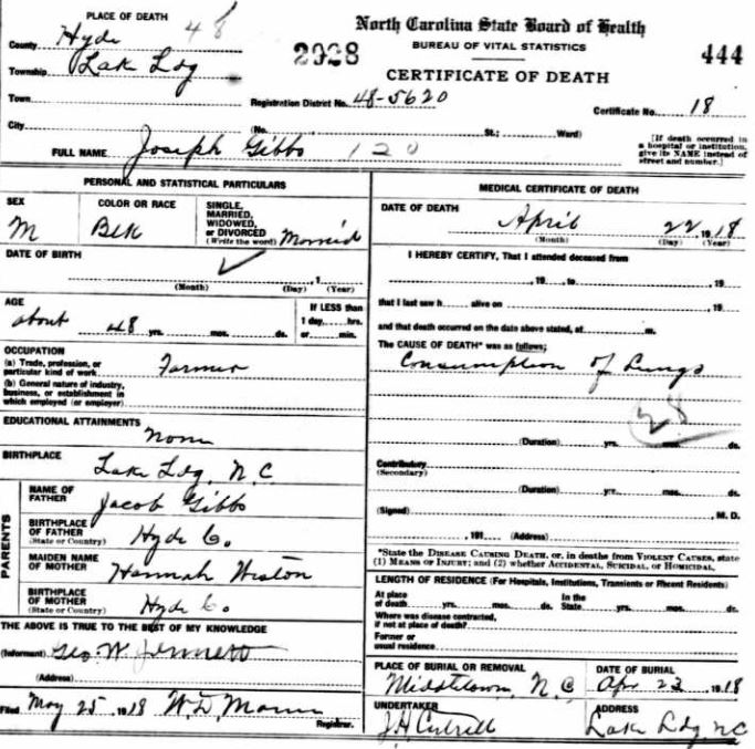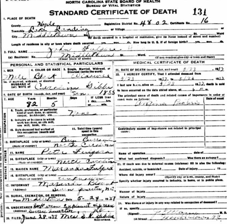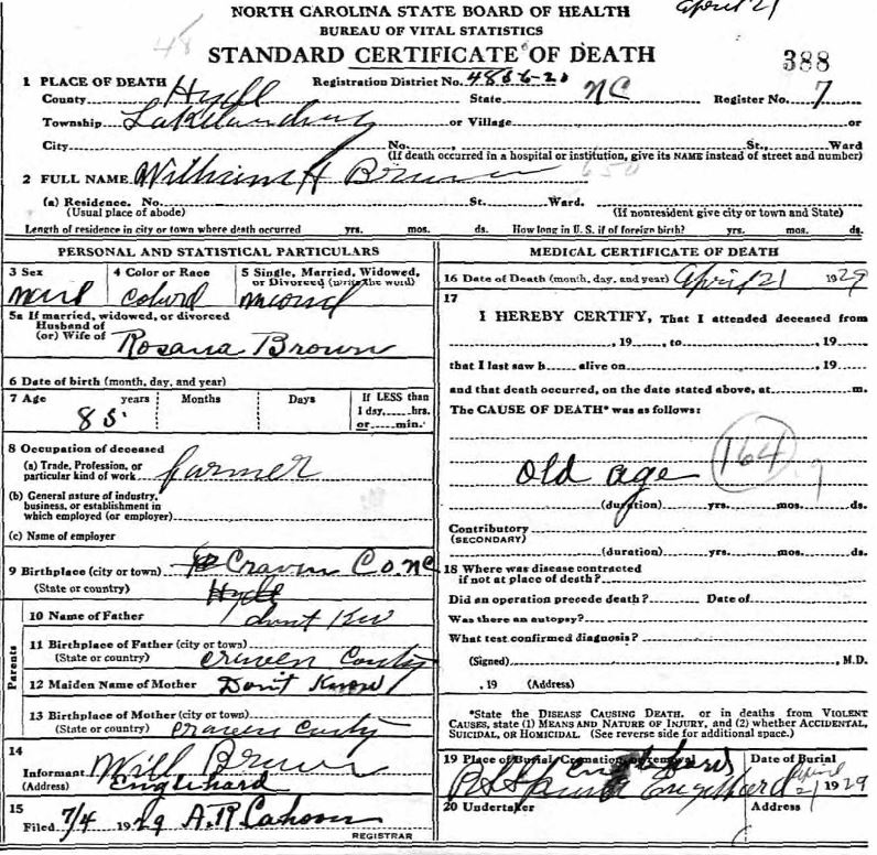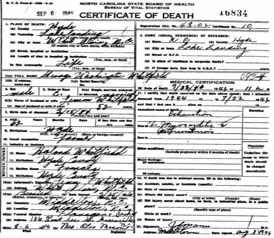 | Whitfield, George Washington | Mar. 15, 1884 | July 22, 1946 | [see death certificate] |