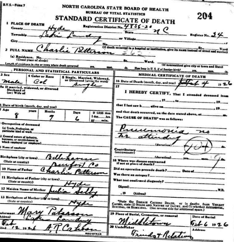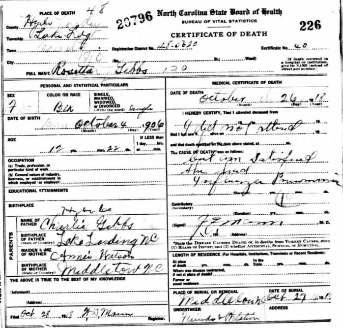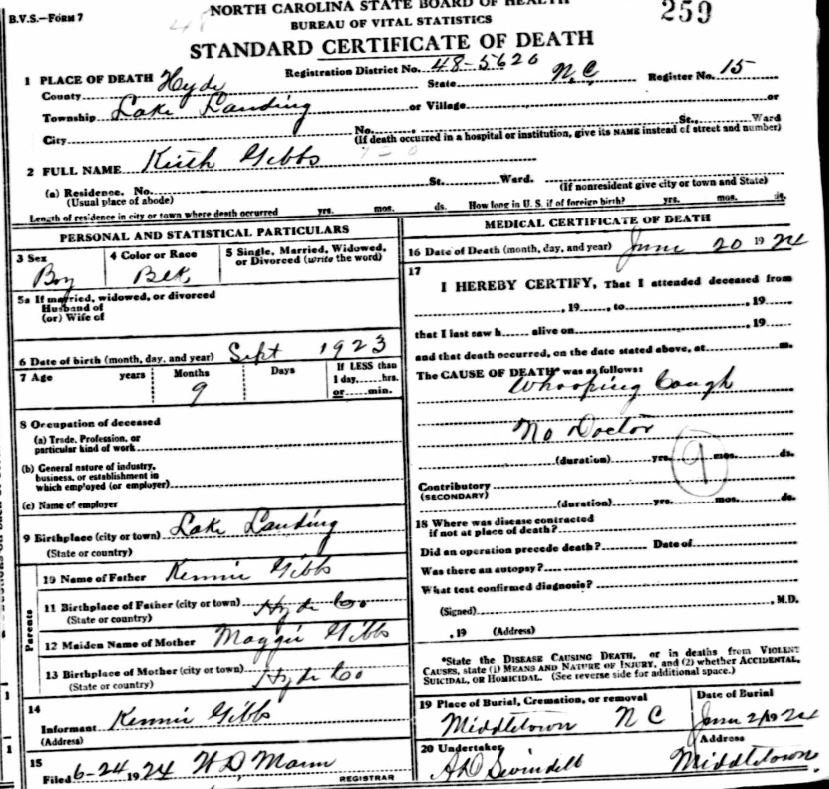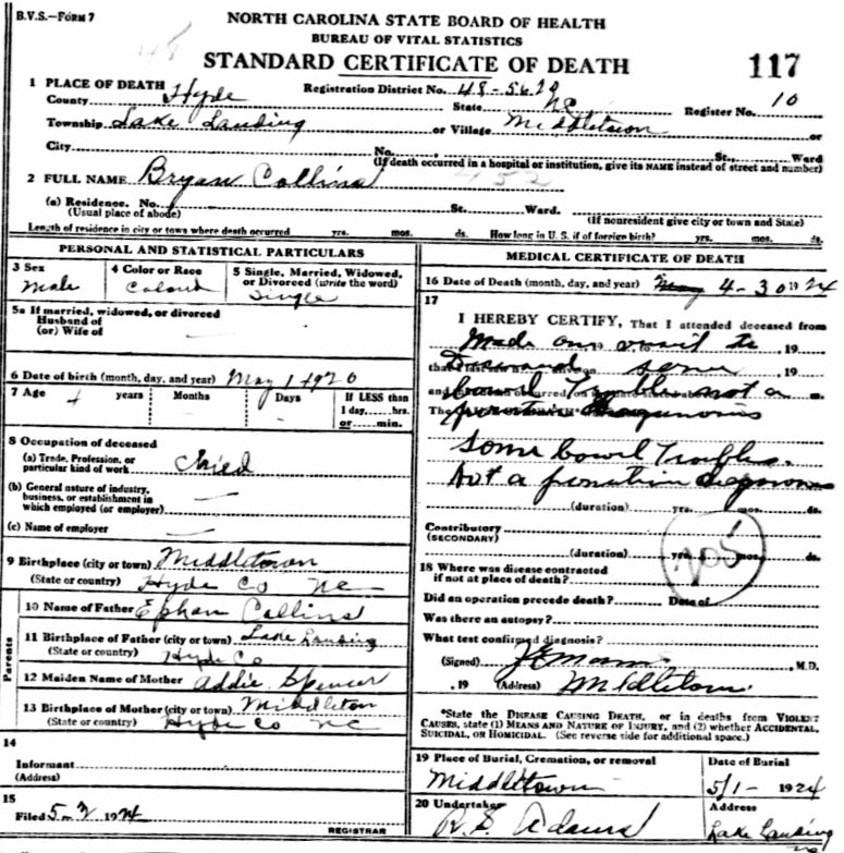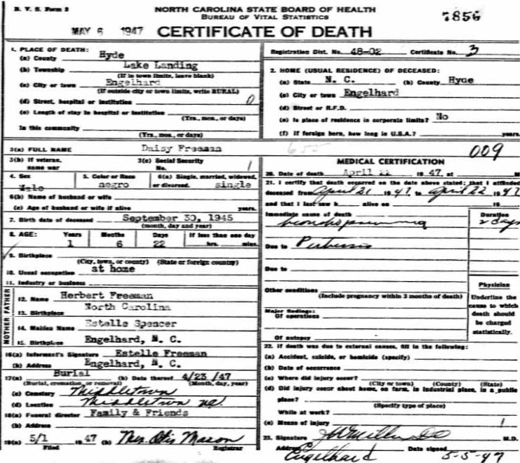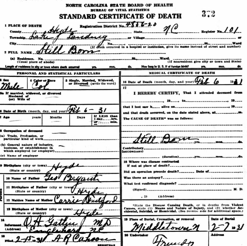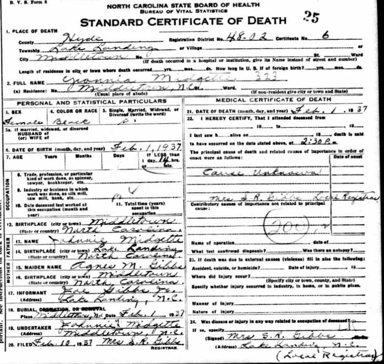 | Whitfield, infant girl | Jan. 6, 1915 | Jan. 8, 1915 | [see death certificate] |