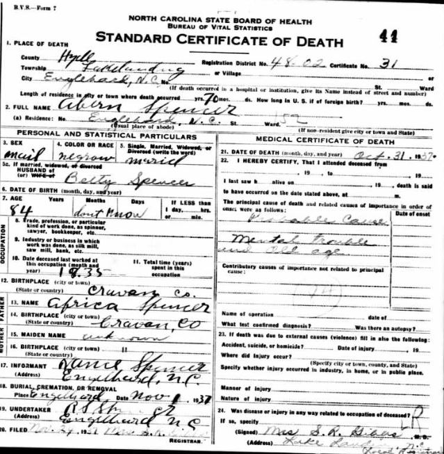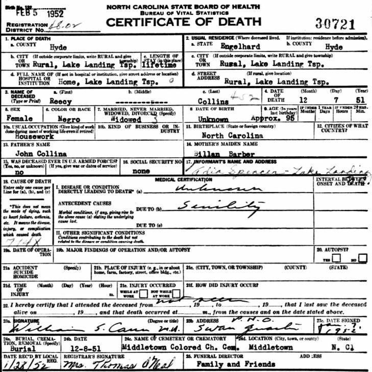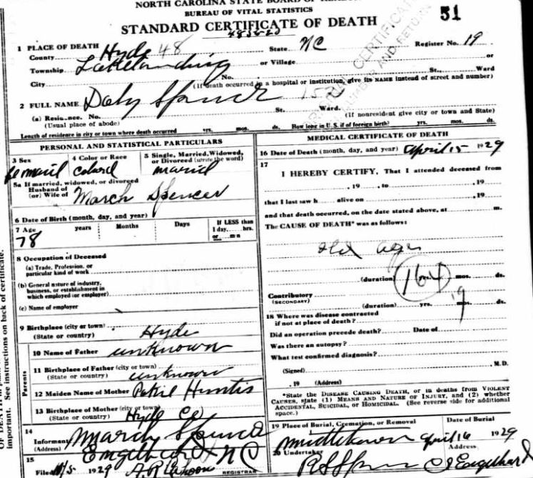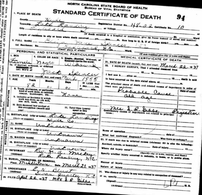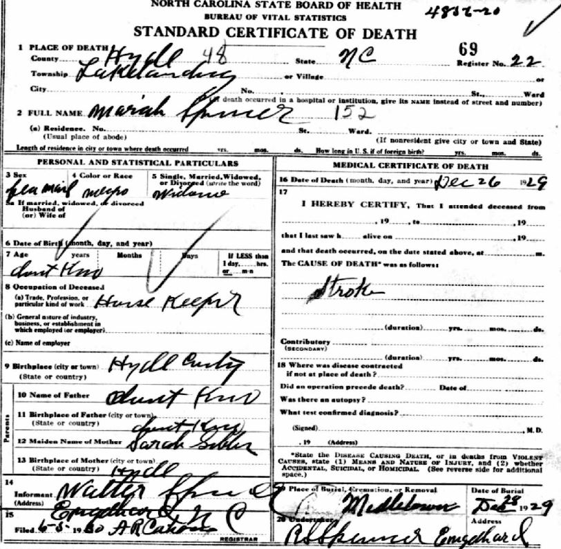 | Spencer, Mariah | Dec. 26, 1929 | [see death certificate] | |
