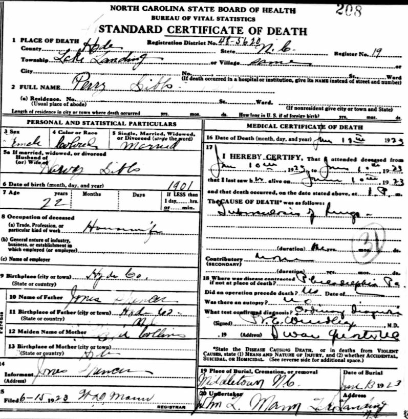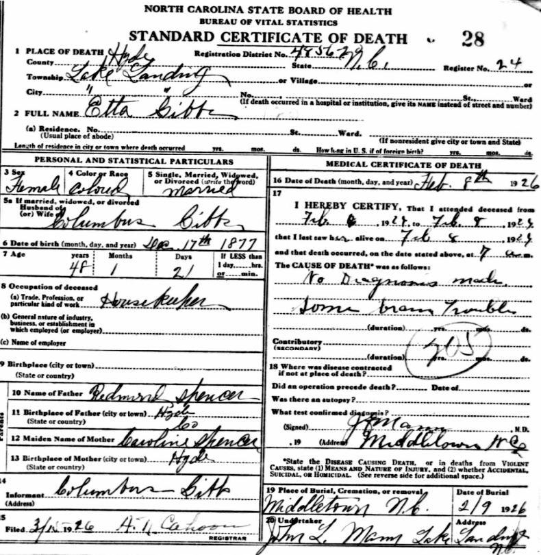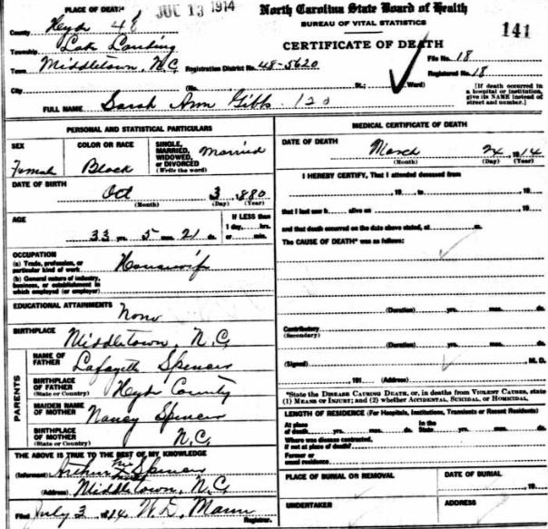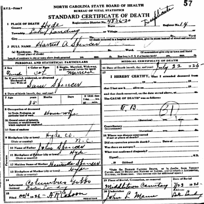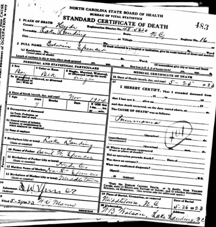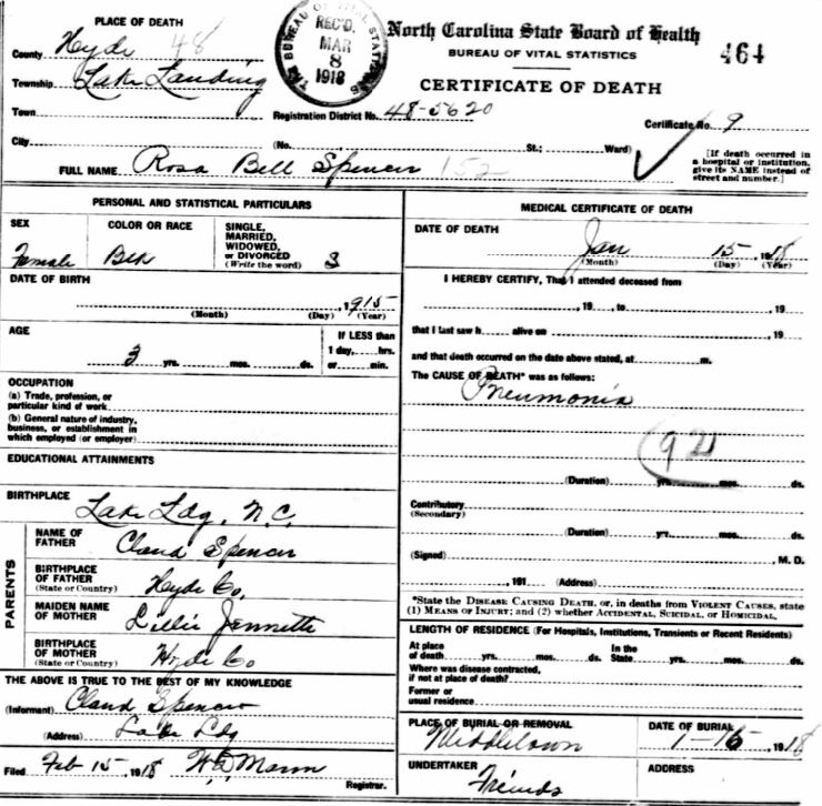 | Spencer, Lemon | Sept. 2, 1917 | Apr. 28, 1919 | [see death certificate] |