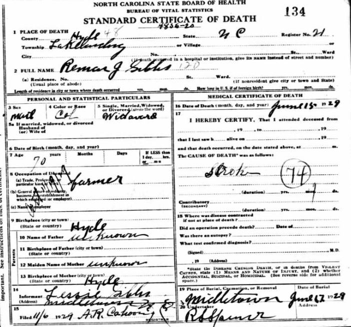 July 5, 1929 | [see death certificate] |