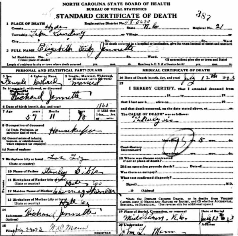 July 22, 1925 | [see death certificate] |