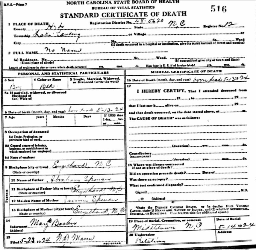 | Spencer, infant boy | May 13, 1924 | May 13, 1924 | [see death certificate] |