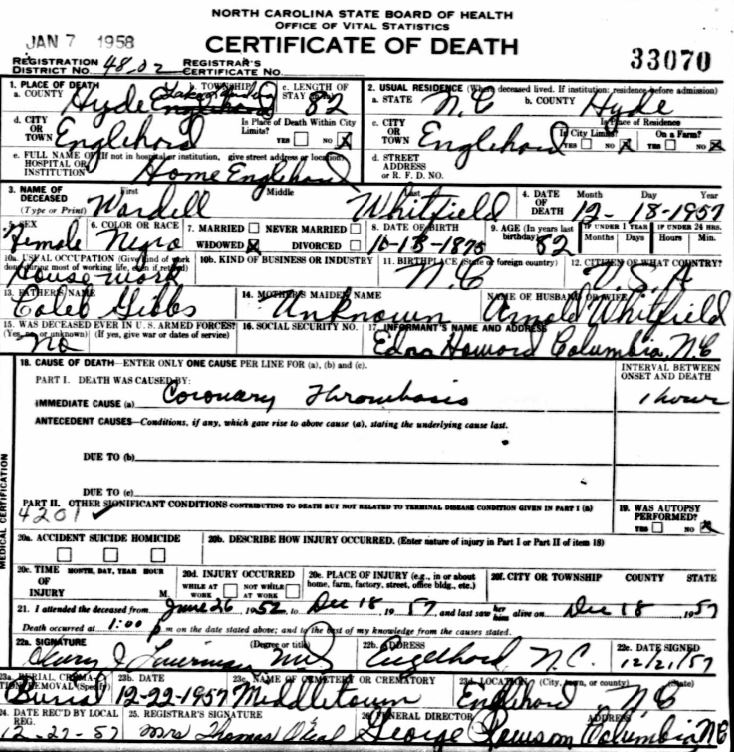 | Whitfield, Wardell | Oct. 13, 1875 | Dec. 20, 1957 | [see death certificate] |
