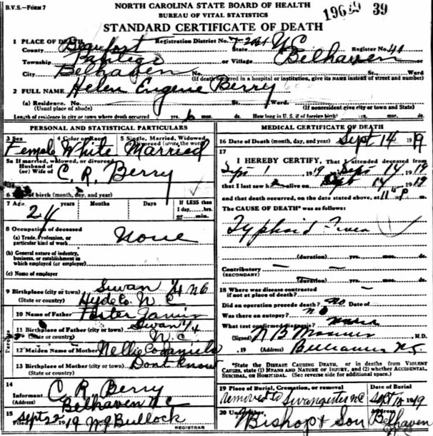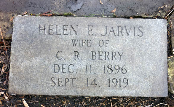 | Berry, Helen E. [Eugene] | Dec. 11, 1896 | Sept. 14, 1919 | Wife of C.R. Berry | Buried beside her infant daughter, Nellie C. Berry [Closeup] [see death certificate] |