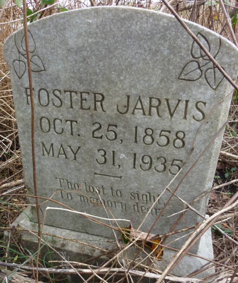 | Jarvis, Foster | Oct. 25, 1858 | May 31, 1935 | Tho lost to sight, to memory dear. | [see death certificate] |