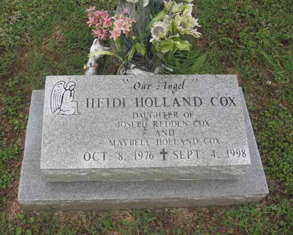 | Cox, Heidi Holland | Oct. 8, 1976 | Sept. 4, 1998 | "Our Angel" - Daughter of Joseph Redden Cox and Maybell Holland Cox | [see obituary] |