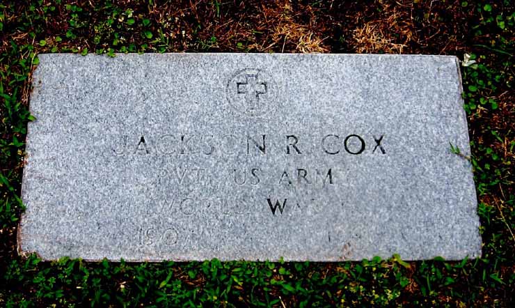 | Cox, Jackson R. | May 4, 1907 | Sept. 24, 1981 | Military Marker - Pvt. US Army - World War II | |