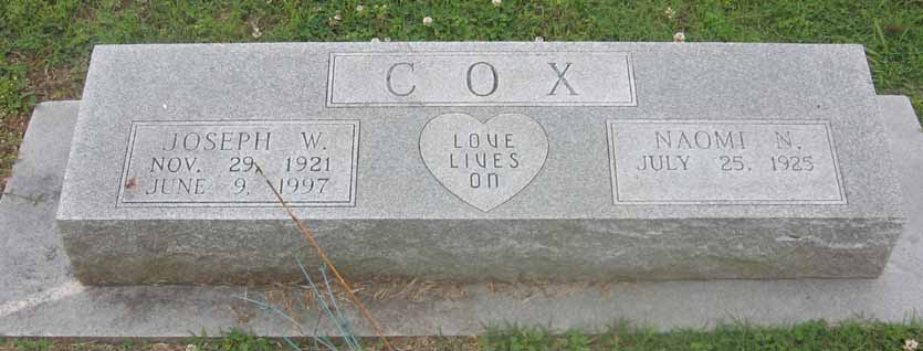 | Cox, Joseph Wilbur | Nov. 29, 1921 | June 9, 1997 | Love Lives On - Tec 5 - US Army - World War II | [double with Naomi N. Cox] [see obituary] [military stone] |