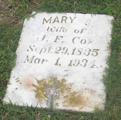 Sept. 29, 1835 | Mar. 1, 1934 | Wife of J.F. Cox | [see original stone] |