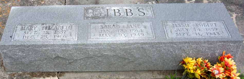 | Gibbs, Sarah Jane | Jan. 12, 1864 | May 30, 1949 | [triple with Jessie Robert Gibbs & Mary Elizabeth Gibbs] | |