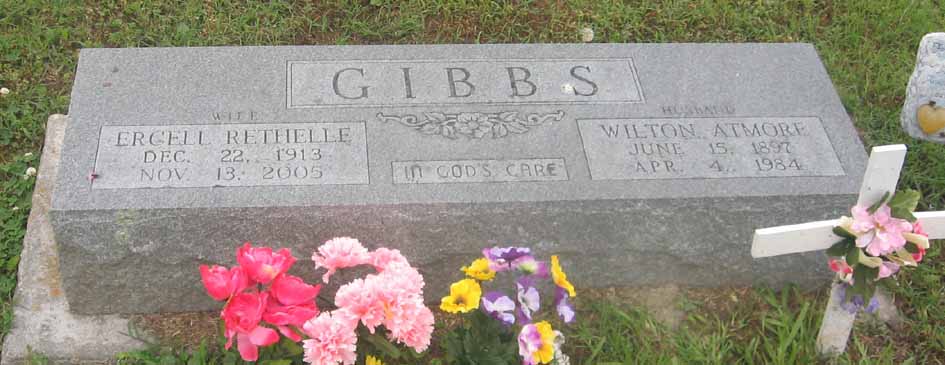 | Gibbs, Wilton Armore | June 15, 1897 | Apr. 4, 1984 | Husband - In God's Care | [double with Ercell Rethelle Gibbs] |
