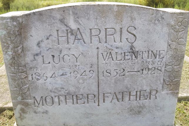 | Harris, Valentine | Nov. 2, 1852 | Mar. 27, 1928 | Father | [double with Loucinda "Lucy"