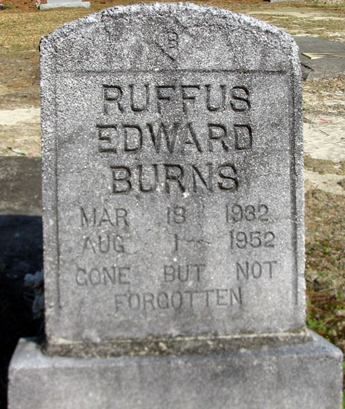 | Burns [Burrus], Ruffus Edward | Mar. 18, 1932 | Aug. 1, 1952 | Gone But Not Forgotten | [Death Certificate states born 1933] |