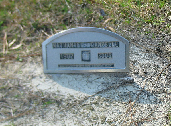 | Campbell, Nathaniel | [Feb. 2] 1902 | [Dec. 11] 2005 | [Hyde Co. obituary] [Delayed Birth Certificate states birth year as1905] [Longshot] | |