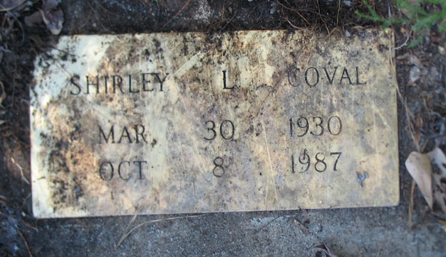 | Coval, Shirley L. [Lee] | Mar. 30, 1930 | Oct. 8, 1987 | [Hyde Co. Death Certificate Index] [Longshot] | |