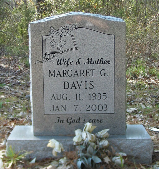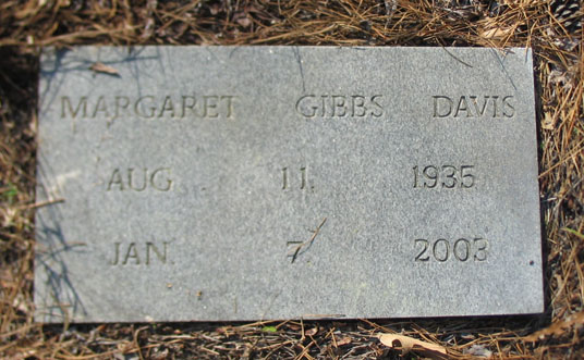 | Davis, Margaret Gibbs | Aug. 11, 1935 | Jan. 7, 2003 | Wife & Mother - In God's care | [Longshot] [Footstone] |
