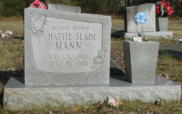 | Mann, Hattie Slade | May 4, 1910 | Aug. 29, 1989 | Beloved Mother | [Longshot] |