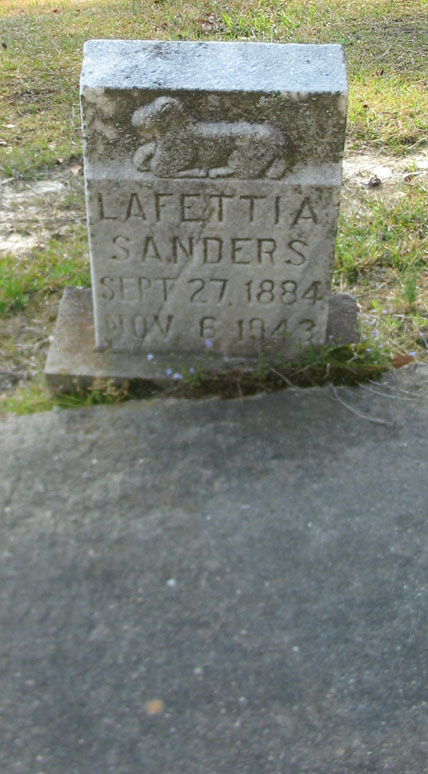 | Sanders, Lafettia | Sept. 27, 1884 | Nov. 6, 1943 | [Death Certificate for Stewart Sanders, Jr. states parents as Stewart Sanderson & Lafetta Johnson] | |