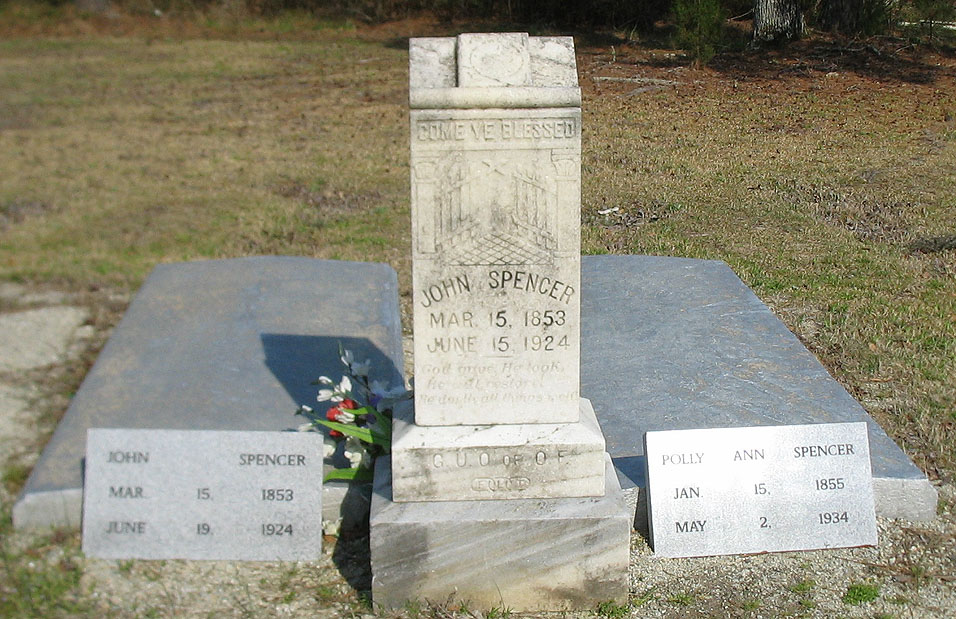 | Spencer, John | Mar. 15, 1853 | June 15, 1924 | Come Ye Blessed - God gave, He took, He will restore, He doeth all things well. - G.U.O. of O.F. [Grand United Order of Odd Fellows] |