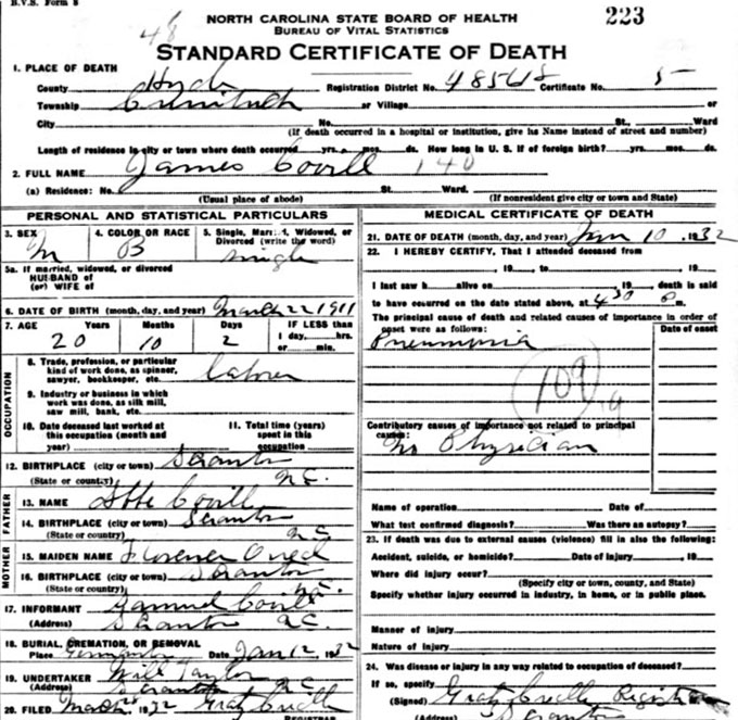 | Burrus, Wallace Lee | Apr. 6, 1944 | Apr. 26, 1976 | [Hyde Co. Delayed Birth Certificate] | |