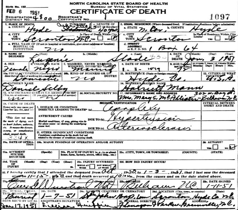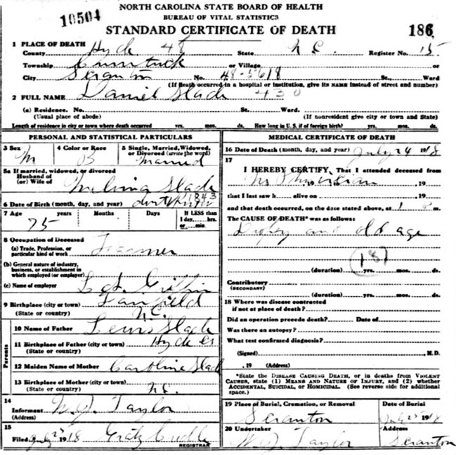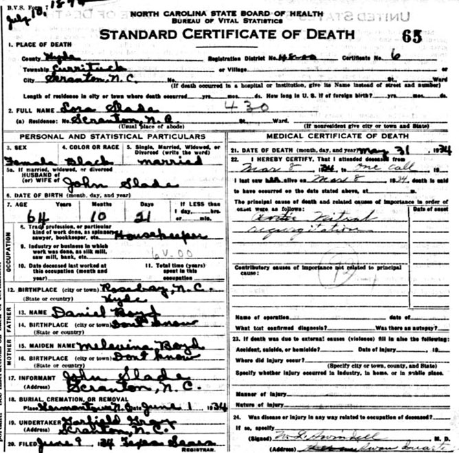 Slade [Death Certificate] |