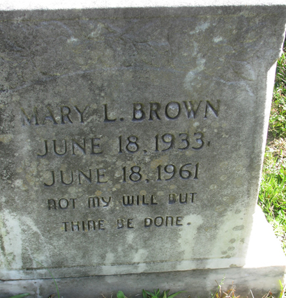 | Brown, Mary L. | June 18, 1933 | June 18, 1961 | Not My Will But Thine Be Done |