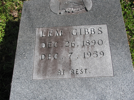 | Gibbs, Lem | Dec. 26, 1890 | Dec. 7, 1959 | At Rest |
