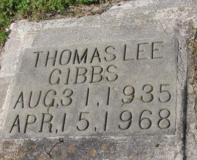 | Gibbs, Thomas Lee | Aug. 31, 1935 | Apr. 15, 1968 | [bottom of tombstone] |