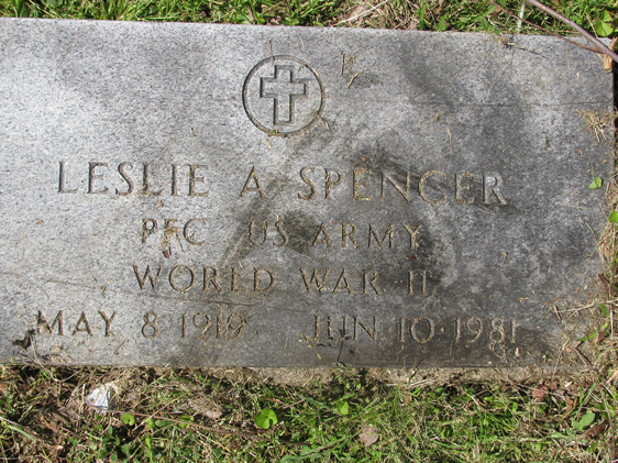| Spencer, Leslie A. photo by Kay Sheppard | [sunk into ground] | [sunk into ground] | Pfc. US Army World War II |