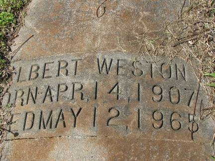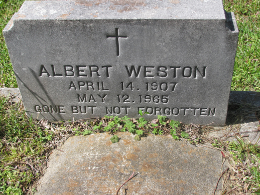 | Weston, Albert | April 14, 1907 | May 12, 1965 | Gone But Not Forgotten [bottom of tombstone] |