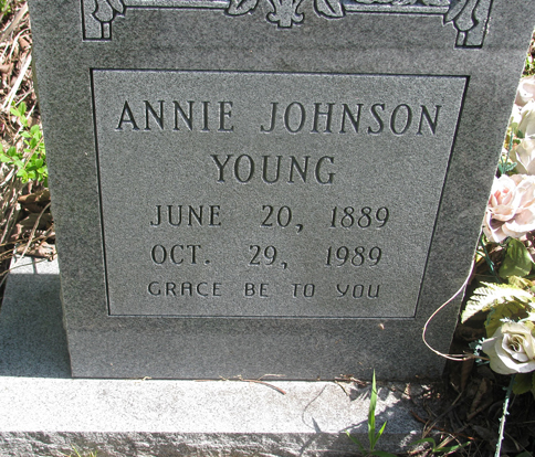 | Young, Annie Johnson | June 20, 1889 | Oct. 29, 1989 | Grace Be To You |