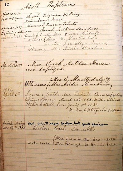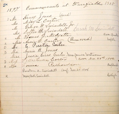 Mr. Tilman Pugh Mrs. Sallie S. Credle (Returned to the Methodists) Mrs. Louisa Credle |