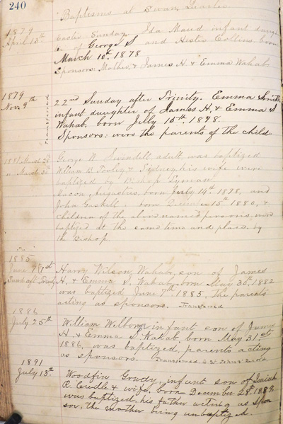 1889, was baptized, his father acting as Sponsor, the mother being