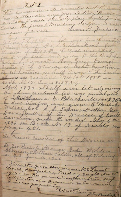 the Diocese of East Carolina. Deed recorded May 6th 1890