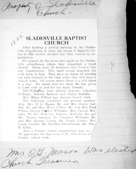the Sladesville Missionary Baptist Church. It is hoped that further