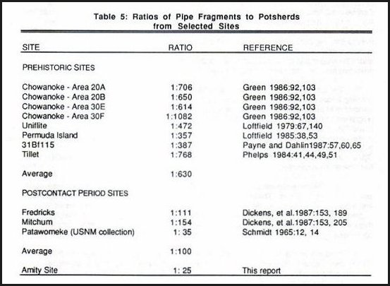 Table 5: Ratios of Pipe Fragments to Potsherds from Selected Sites