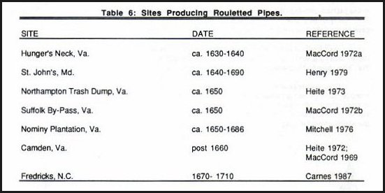 Table 6: Sites Producing Rouletted Pipes