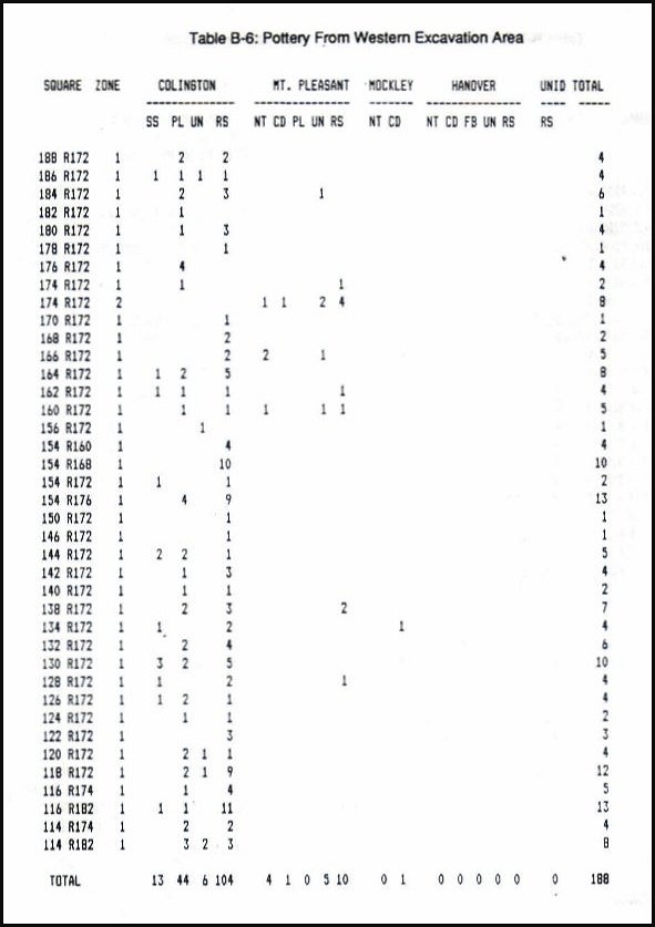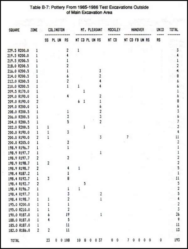 Table B-7: Pottery From 1985-1986 Excavations
