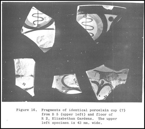 Nothing else of significance came from the test. Pig bones were found in the top nine inches as well as were bricks, plaster fragments, glass, and crockery. This modern material is derived from some former nearby slave quarters. Numerous pieces of trade pipes came from the same top zone.