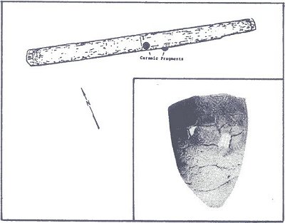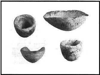 Similarly, there are fewer pottery vessels and stone tools. The typical pottery of the Cohngton phase, tempered with fragments of shell mixed in the clay, (Page 11)
