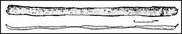 Some of the canoes are nothing more than fragments while others are essentially intact - preserved by the acidic water and their long burial in the lake bottom sediments. The end (bow and stern) shape of the canoes varies, and the length of the longest canoe found so far is 37 feet. Four of the canoes have been preserved and two are on display at Pettigrew State Park. Nineteen of the canoes have been dated by the radiocarbon process, and they range in age from 2400 B.C. to A.D. 1400, correlating closely with the known age of the other artifacts from the lake. (Page 4) |