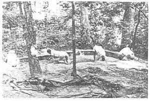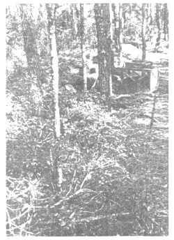 A further, unsuccessful search was made for the "burial mound" reported by Williams in 1896. Squares and transacts were opened at various points along Alder Branch, and a local informant finally showed us the possible location of the "old corduroy bridge" across the branch, a major locational point in Williams' description which will be a key to future searches (Figure 10).