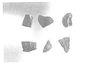 The Indiantown site has information relating to culture change and acculturation of the Weapemeoc - Yeopim society from its traditional form to that of Colonial society, and here we may be able to address the causal factors of social system collapse through population reduction (from disease, inadequate subsistence and other factors). The Yeopim pattern also takes different paths from that of the Reservation period Chowanoke, and even technological system traits, such as ceramics, show a decline in traditional craftsmanship. The pottery shown in Figure 9, right, which we have named "Indiantown ware", is still shell-tempered in the Colington tradition, but the temper is poorly crushed and the clay has been insufficiently worked, producing a crude, contorted copy of the older Colington ware.