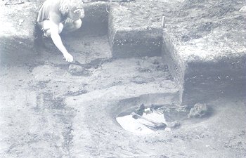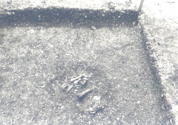In addition to the four burials scattered fragments of human bone were found in the disturbed upper levels of square 4L4, where the grading machinery had obviously destroyed a burial pit; in level 1 of squares -48 and -56R2; and in Test Square A from the 1972 work at the site.