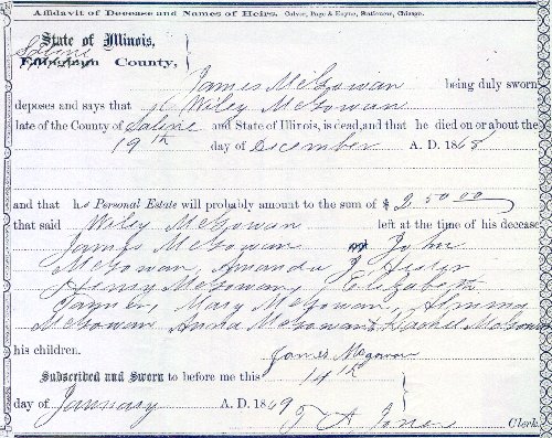 Source: Saline County, Illinois Probate Records: Volume 1 (Boxes 1-16), Box 16 - 18: McGowan, Wiley.