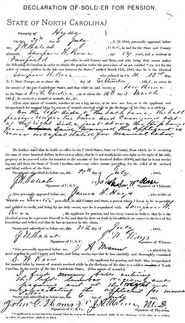 Sampson / Samuel W. Rose (Co. H, 33rd Regt. NCST)