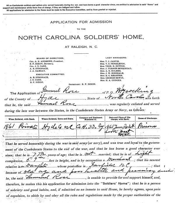 Application for Admission to the North Carolina Soldiers' Home (1901)