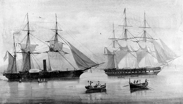 From the book, The United States Marine Corps in the Civil War, The First Year, by David M. Sullivan which states, "Two weeks after the surrender of Hatteras Inlet, USS Susquehanna, and Pawnee, with the tugboats Fanny and Tempest cruised south to Ocracoke Inlet, the next break in the chain of islands off the North Carolina coast. The tugs took the route close to the mainland through Pamlico Sound, towing launches containing Marines and seamen from USS Pawnee, commanded by Lt. James Maxwell, USN, while the deep draft warships steamed beyond the islands. Confederate forts had been erected in the vicinity of Ocracoke Inlet. The mission of the Union forces was to destroy them."