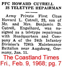 | CUTHRELL, Nicky Wade [1946 - 1969)] | Sgt. | U. S. Army | 595th Signal Spt. Co.; 1st Signal